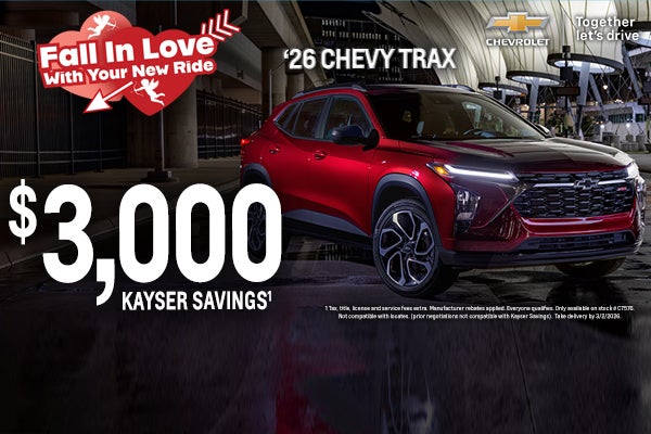 Tax, title, license and service fees extra. Manufacturer rebates applied. Everyone qualifies. Only available on stock # C7576. Not compatible with locates. (prior negotiations not compatible with Kayser Savings). Take delivery by 3/2/2026.