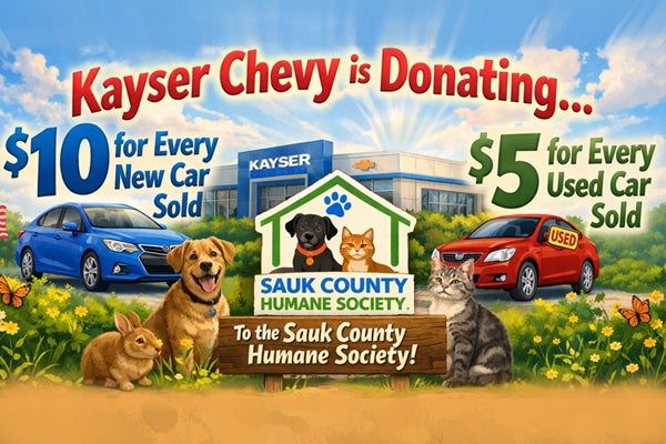 Buy a Vehicle, we will donate to Sauk County Humane Society